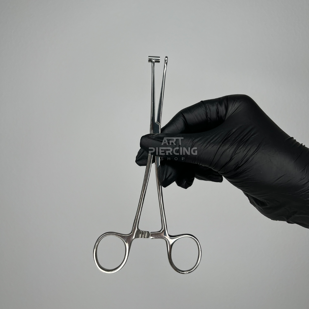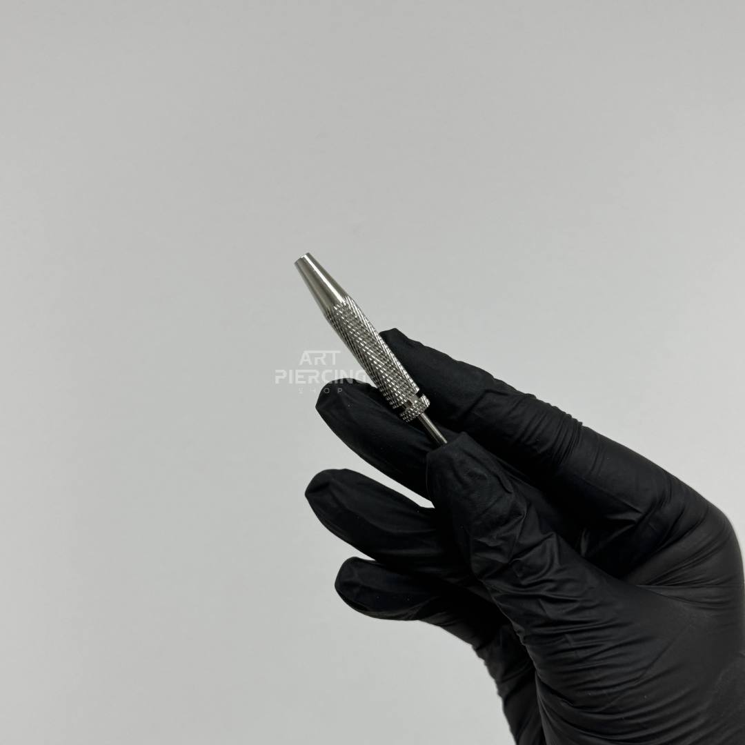 Затискач трикутний з прорізом і округленими краями, золотий — високоякісний інструмент, призначений для надійної фіксації прикрас і деталей під час виконання пірсингу. Завдяки трикутній формі та прорізу забезпечує зручне утримання виробу, а округлені краї запобігають пошкодженню шкіри й прикрас.